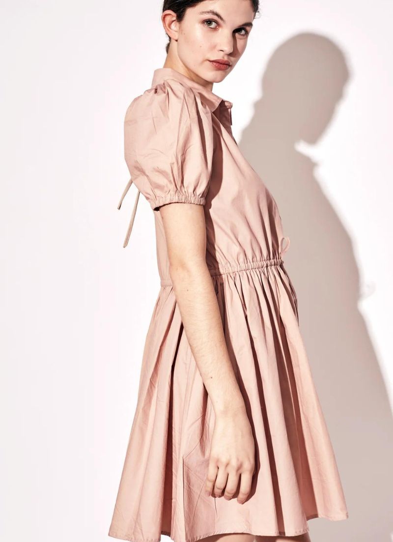 Gasus offers a traditional fit with some added elements of a tie waist and puff sleeves; the Gasus wears perfectly well dressed up or down.