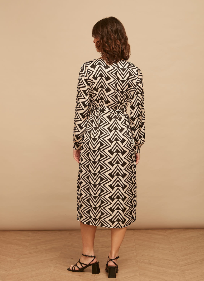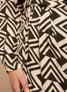 Look effortlessly elegant and stylish in our SONG Dress! This classic midi-length dress is ultra-flattering, with its slightly puffed sleeves, high elastic waist, and romantic round neckline. Don't forget the bold geometric print that adds a touch of glamour to your look. Perfect for any occasion, you can feel confident and fabulous in this go-to dress!