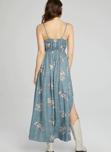We love feminine florals! The Trace Maxi Dress features thin straps, long side slits and cinshing at the waist.