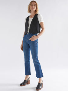 Introducing the ultimate layering piece: the Ilona Vest. This one-button, cropped linen vest features a fully lined design with encased elastic at the back for a comfortable fit. Made from durable and breathable linen, it's the perfect addition to any wardrobe.