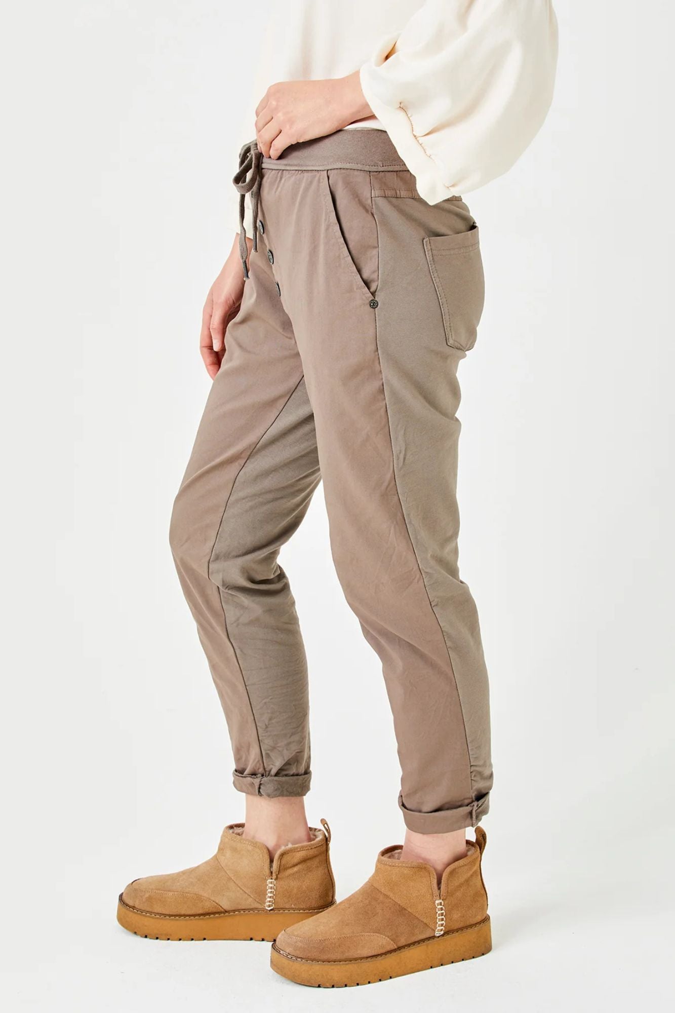 Becca Diagonal Button Joggers