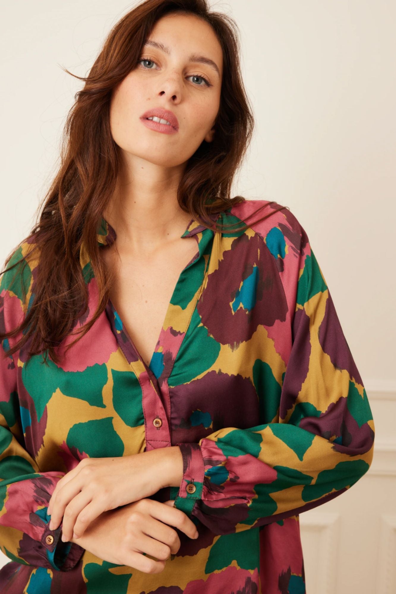 Introducing our Bricoleur Printed Blouse - the perfect combination of style and comfort! Made from a luxurious silky soft material, this long sleeve shirt boasts a v-neck and relaxed boxy fit for a flattering look. The floral inspired print adds a touch of whimsy to any outfit. A must-have addition to your wardrobe!