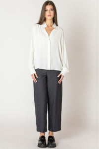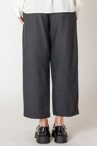 These Button Hem Pants feature unique buttoned hems that highlight your favorite shoes with flair. The subtle charcoal stripes bring a sleek, modern vibe, perfect for casual adventures or adding a playful twist to your office look. With a cropped straight leg cut, they combine comfort and style effortlessly, making them your new favorite for easygoing cool.