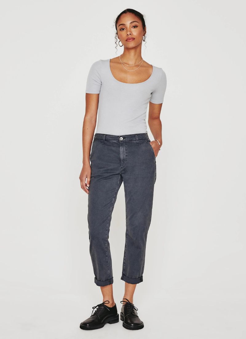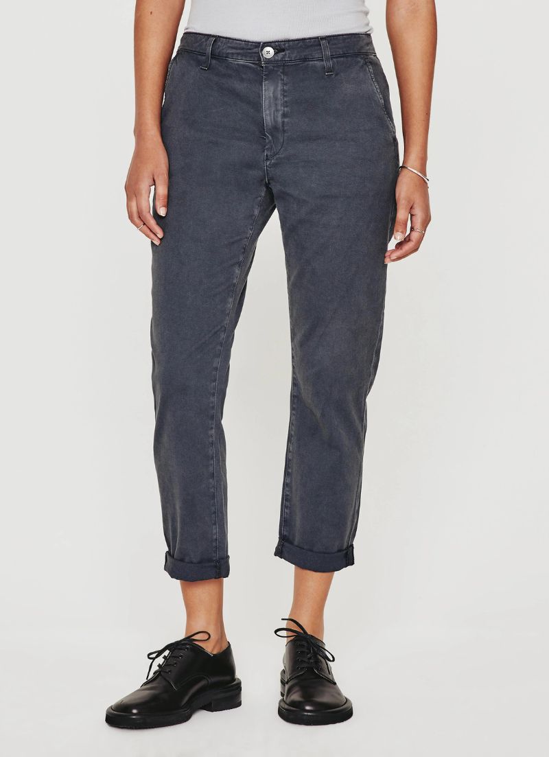 This women's pant has a relaxed fit at the hips and a gently tapered shape through the legs, finishing in a cropped length that lands above the ankles. Detailed with slant front pockets and welt back pockets.