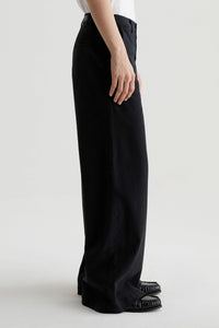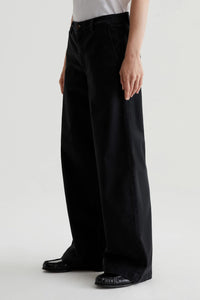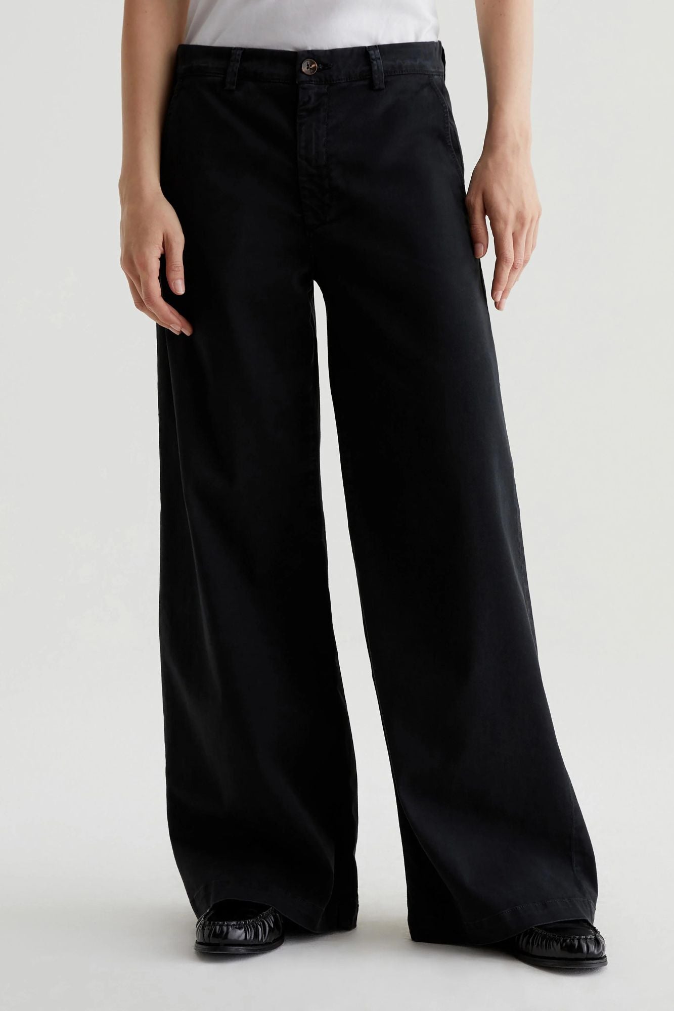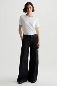 Elevate your wardrobe with the Caden Wide Leg pants. Made from the soft and comfortable 7.9 oz. Sorrento Stretch Twill, these trousers offer a relaxed fit at the hips and a loose, roomy cut through the legs. The versatile black color and classic design featuring slant front pockets and welt back pockets make these a must-have for any stylish woman.