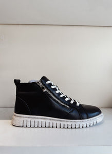 Similar to the Clarence Sneaker but with a high top design. Sports stylish gets an uptown makeover! Features include a removable footbed, lace up system and side zipper.