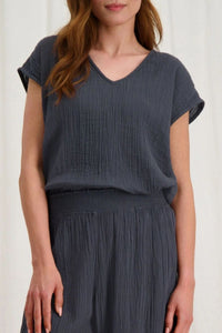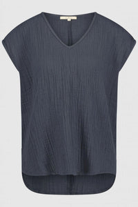 Introducing the Dena Top, crafted with lightweight mousseline for a breezy fit. With its relaxed loose fit and v-neck design, this top is perfect for any casual occasion. And let's not forget the longer backside, giving it an extra hint of style. Elevate your wardrobe with this playful and effortlessly chic top.