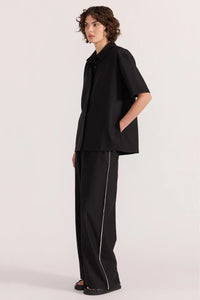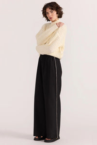 The Dion Relaxed Pants are your new go-to for effortless style and comfort. With a high-rise elastic waistband and a relaxed fit, they’re perfect for lounging or stepping out. The timeless black wash pairs easily with anything, while the playful cream piping along the sides adds a fun twist. Practical side seams and a back patch pocket keep things handy without sacrificing style. Slip them on and enjoy a blend of cozy and cool all day long!