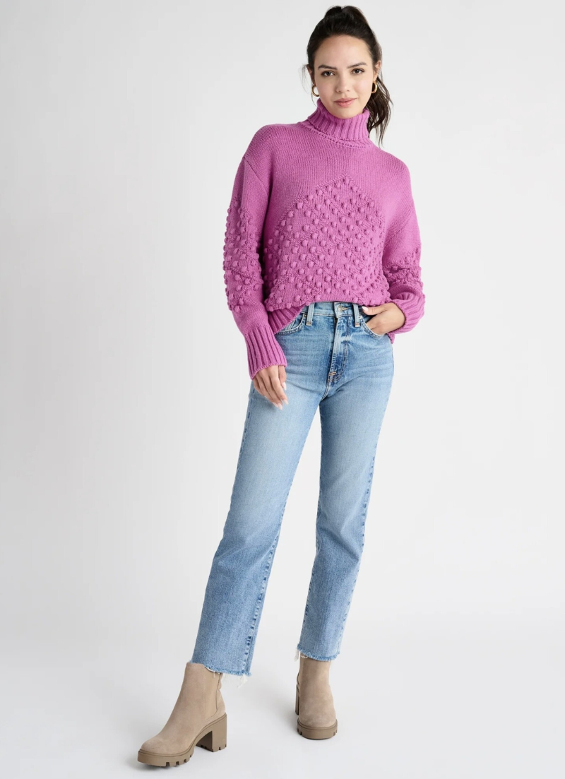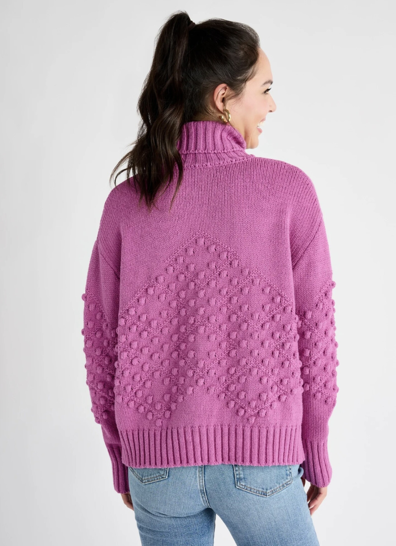 Feel the warmth of this woolly turtleneck knit in a slouchy silhouette with dropped shoulders and lively texture.