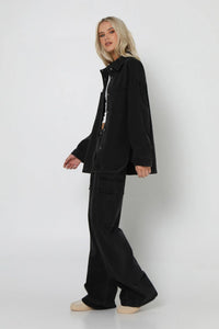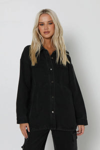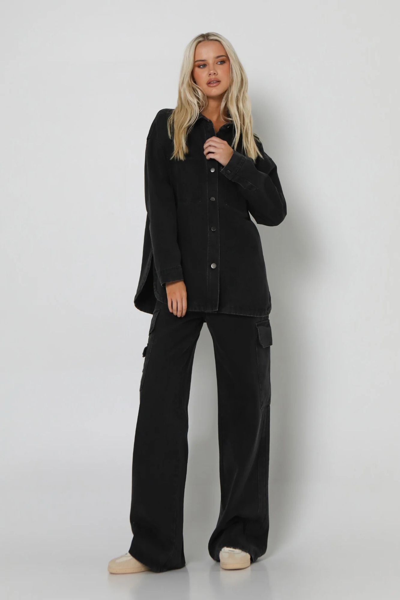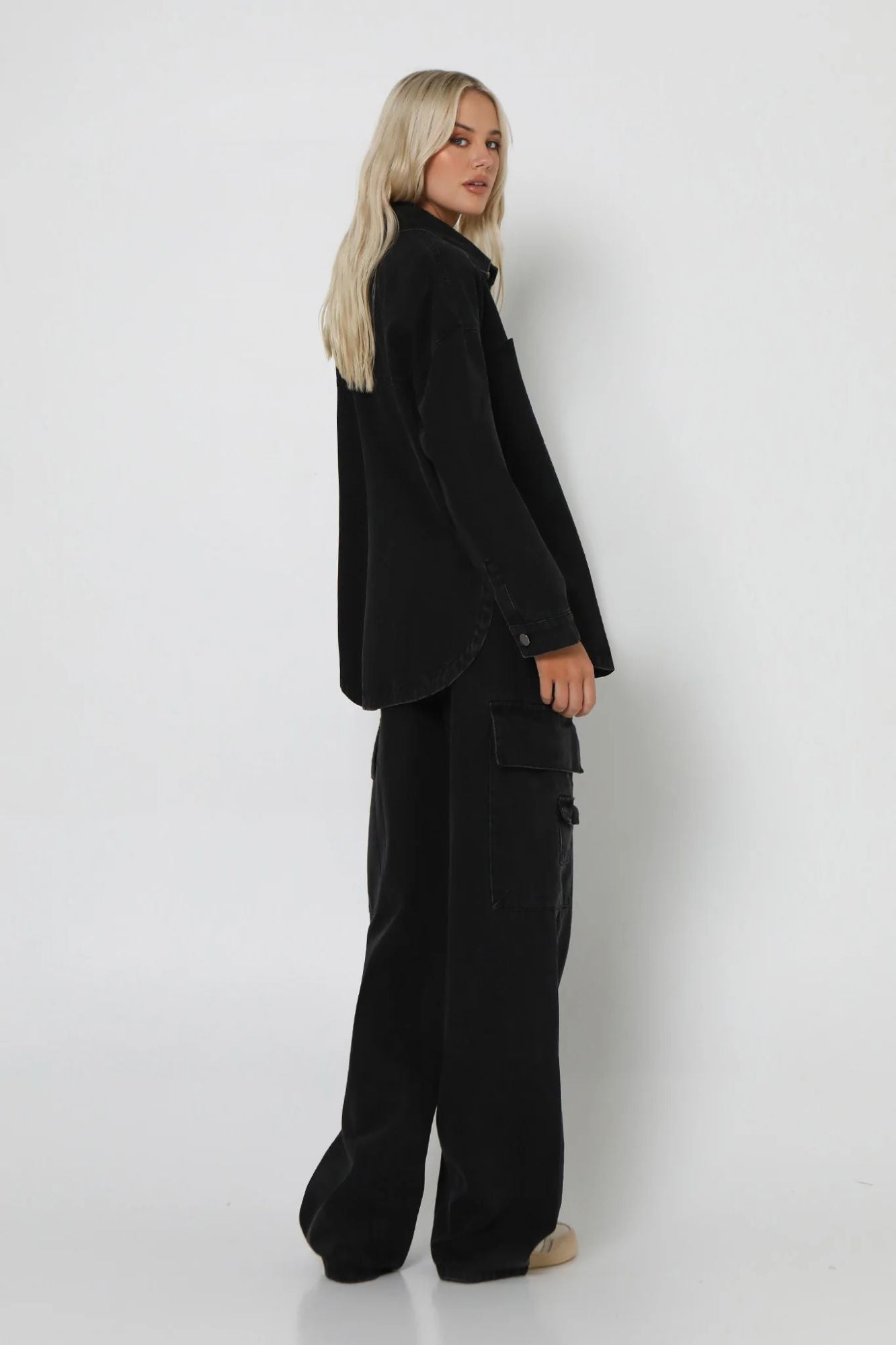 Made with a relaxed fit and featuring a classic black denim material, the Emery Shirt is a staple in any wardrobe. The front patch pockets add a touch of functionality, while the curved hem with short side splits provides comfort and versatility. Perfect for any occasion, this shirt is a must-have for effortless style.