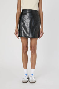 Get ready to rock the Emmet Skirt, a killer black beauty that spices up any ensemble. Crafted from faux leather and adorned with welt pockets and flattering design details, this chic skirt boasts a glossy shine for added flair! (And bonus, it's totally cruelty-free.)