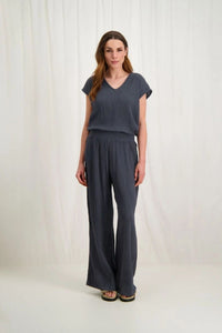 Get ready to add some fun to your wardrobe with the Nova Pants! These pants are 100% cotton and feature a wide leg for a comfortable and relaxed fit. The elastic waistband ensures a perfect fit for all body types. The crinkled fabric adds a touch of uniqueness to your look.
