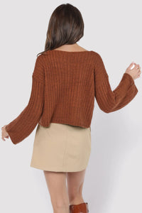 The Rosalia Sweater is ideal for transitioning into Fall with its warm rust/brown color that complements any denim or cream and black trousers effortlessly. This versatile sweater adds a cozy, stylish layer to your wardrobe, making it easy to create chic, comfortable outfits for the season. Embrace the perfect blend of color and comfort with the Rosalia Sweater.