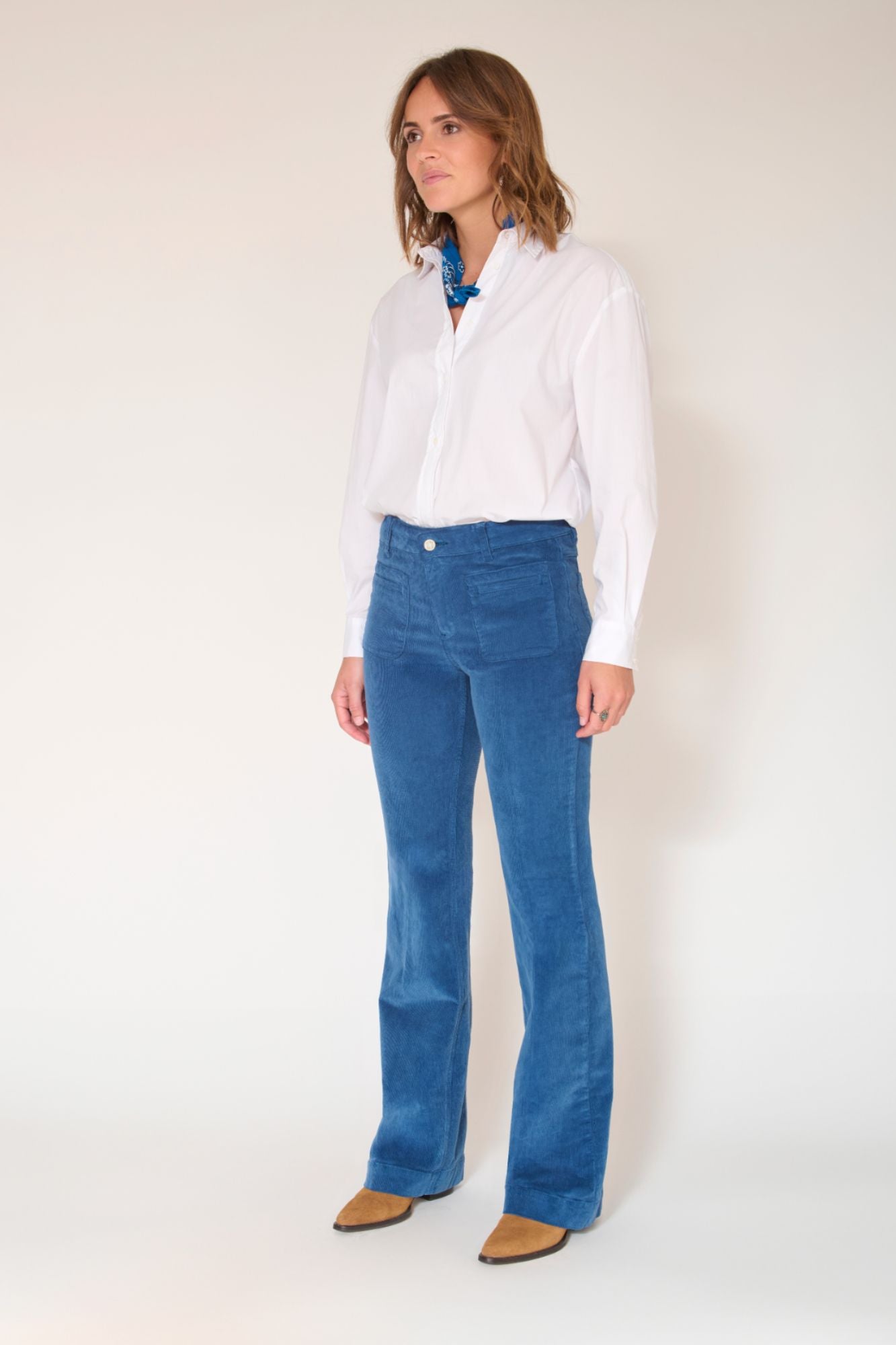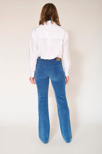 The Diana Velvet Chic Flare jeans combine a contemporary bootcut silhouette with a luxurious velvet texture, creating the perfect blend of fashion and comfort. Featuring a vibrant pop of color for a playful touch.