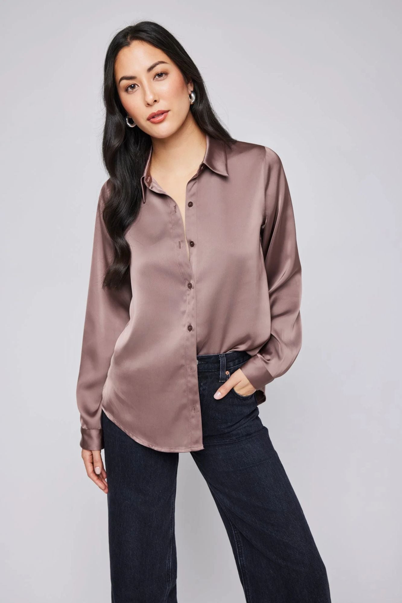 Get ready to turn heads with the Winslow Blouse. Made from luxurious satin, this button down shirt can be styled in multiple ways - wear it as is for a sophisticated look or layer it over another outfit for a fashion-forward statement. Complete your ensemble with the Millicent pant.