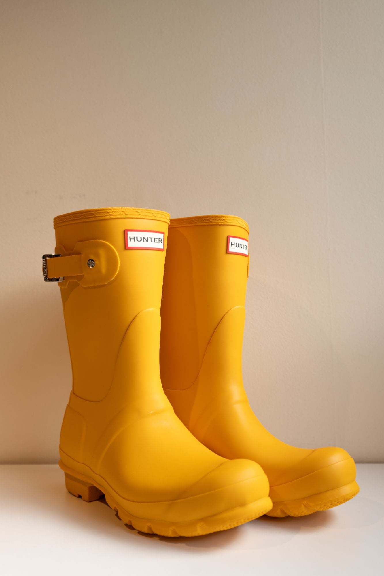 Brave the rain in style with the Original Short Boot! Handcrafted from natural rubber, this shorter version of the iconic Hunter Tall Boot offers superior protection with its vulcanised construction. Complete with a unique tread pattern and cozy recycled polyester lining, this 100% waterproof boot is a must-have for wet-weather conditions.