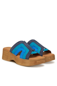 Step into style with the 64.521 Platform Sandal! Featuring a soft suede upper and leather lining, these sandals offer comfort and breathability. The wider fit at the ball of the foot ensures a relaxed feel, while the 6 cm block heel adds just the right amount of lift. The playful multi-colored blue platform makes every step a statement. Perfect for adding a fun pop of color to any outfit!