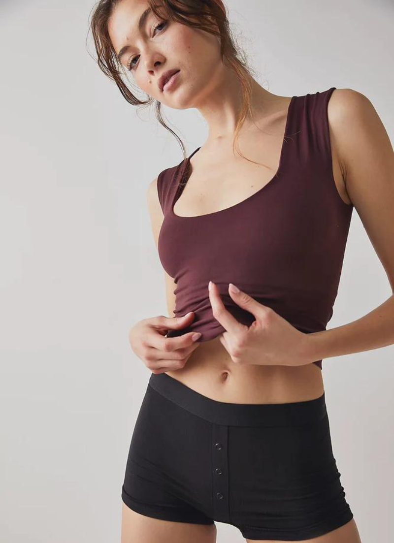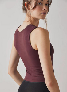 A new addition to your favorite seamless collection. This sleek tank is featured in a buttery soft fabrication with a scoop-neckline and sleeveless silhouette. Built in bra for additional support and coverage without the need for layering.