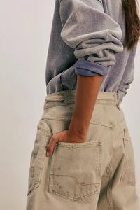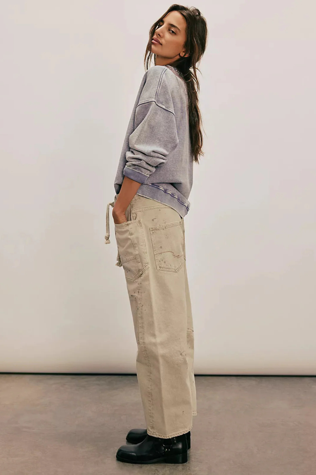 Elevate your denim collection with the Moxie Low Slung Pull jeans, designed for a cool, contemporary look. Featuring a low-slung, slouchy fit with a tapered silhouette, these jeans offer effortless style and comfort. Distressed details and unique paint splatter accents add edgy character, while oversized patch pockets and a contrast drawstring waist enhance practicality and flair. The easy pull-on style makes them perfect for everyday wear with a bold twist.