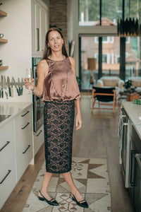 Crafted from a premium corded stretch lace, the Lexington Lace Skirt combines comfort and style. Fully lined for easy wear, this skirt features an elasticated waistband and intricate lace detailing along the hem. With a side slit and a high rise, it's the ideal addition to any wardrobe.