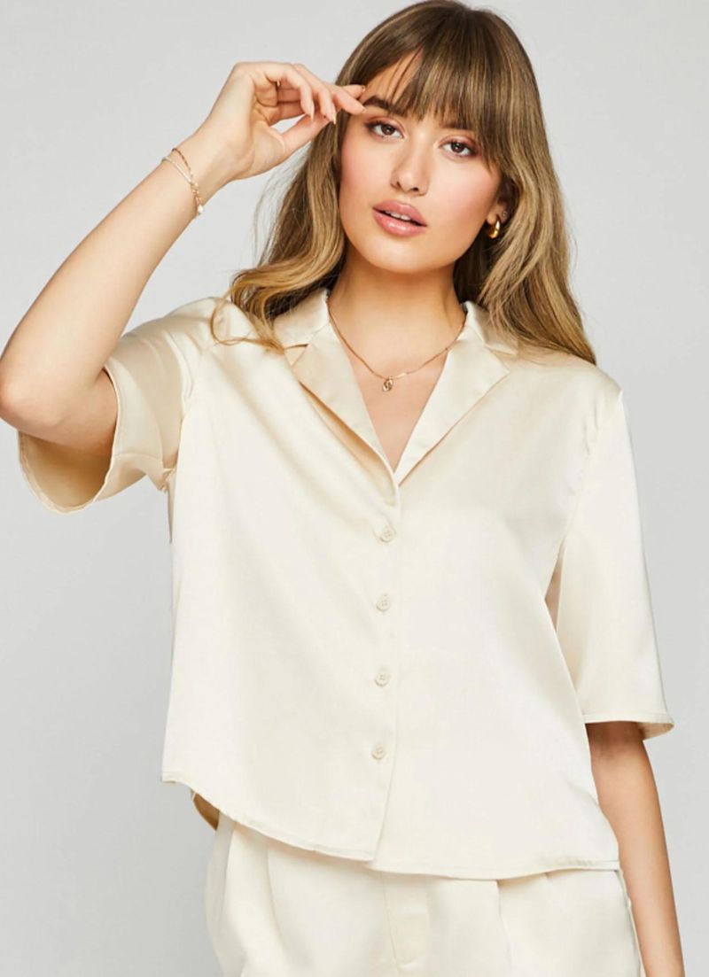 Get ready to turn heads in the Moxie Top! This button-down shirt is the perfect combination of luxury and versatility, made from a luxe satin material. With a unique camp collar and stylish side slits, the Moxie Top is sure to add a touch of sophistication to any outfit. Upgrade your wardrobe with this must-have piece!