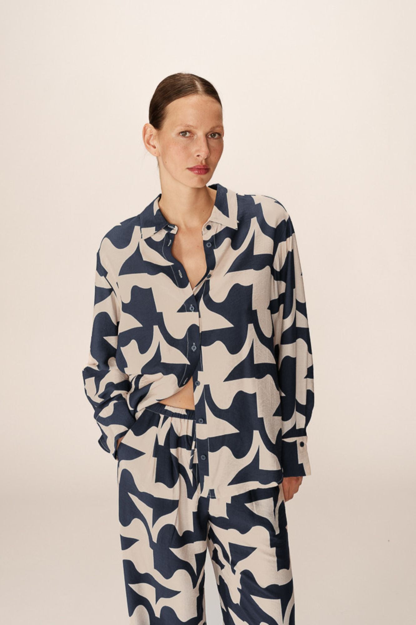 Expertly crafted with a classic shirt collar and button-up closure, the Primo Shirt boasts a bicolor geometric print that adds a touch of modern flair to its timeless design. Made from natural fibers, this long-sleeve shirt offers ultimate comfort and style. Perfect for all body types, with buttoned cuffs and a sleek straight cut.
