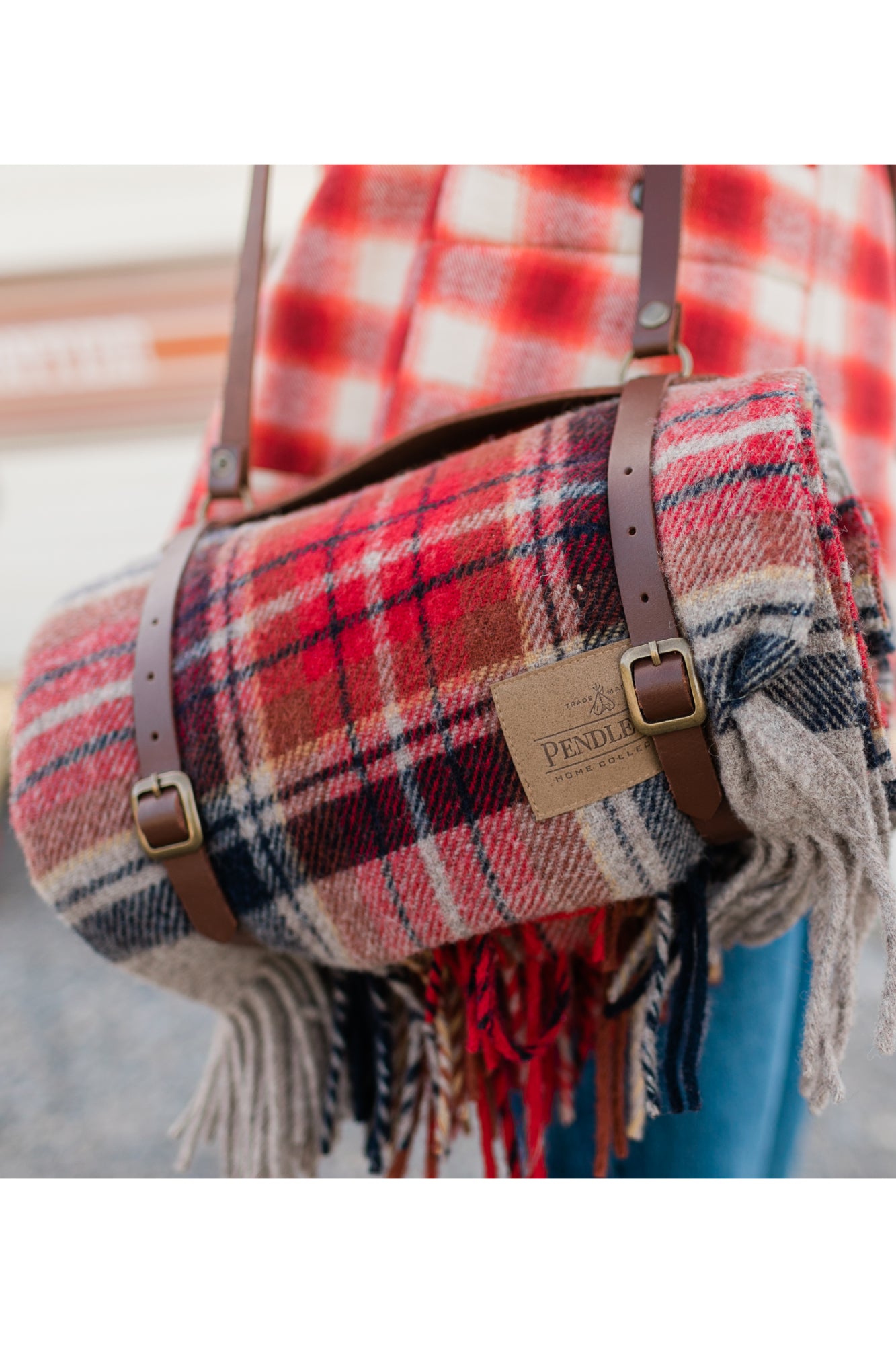 An-all wool throw that’s perfectly sized for a nap on the couch, summer picnics or keeping you warm at the stadium. Called steamer rugs during the early 20th century, these blankets were a warm, welcome companion for those who traveled by horse-drawn carriage, train or boat. Includes carrier for easy portability.