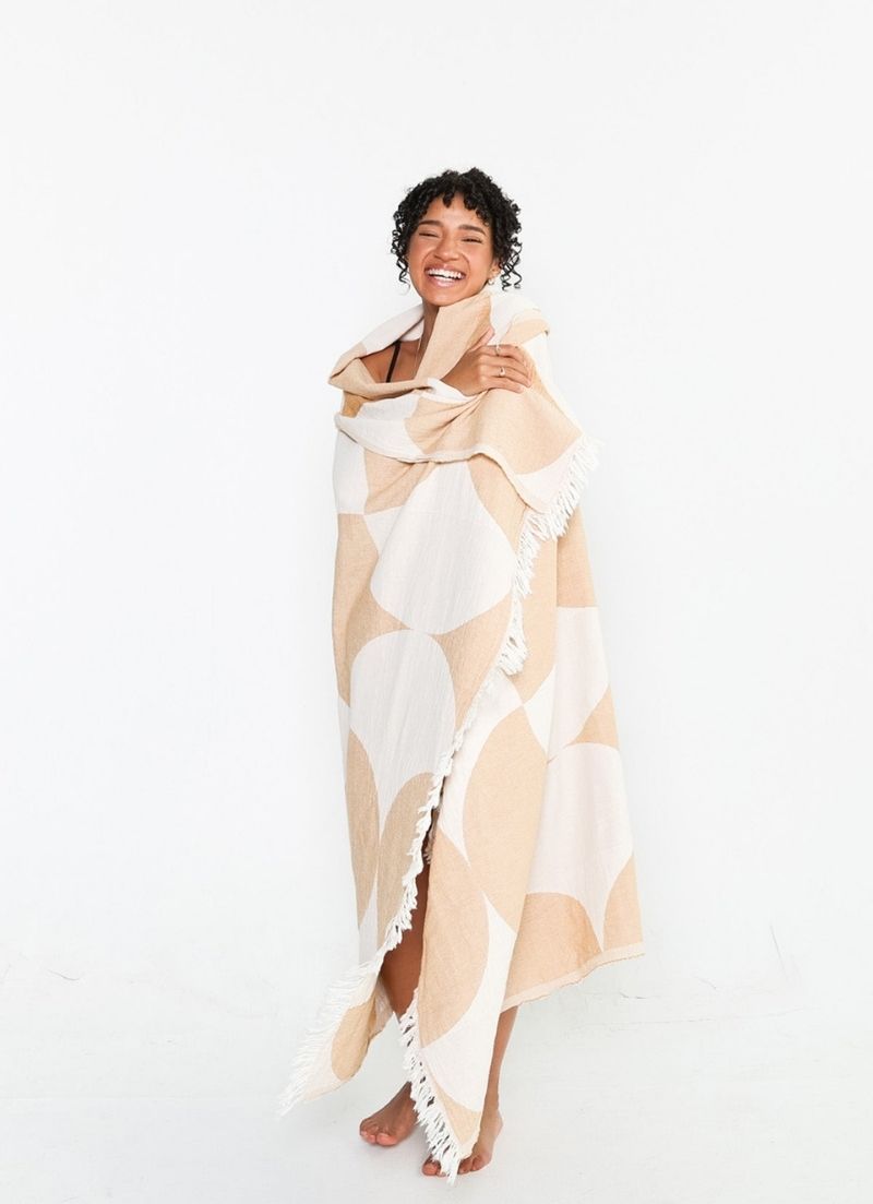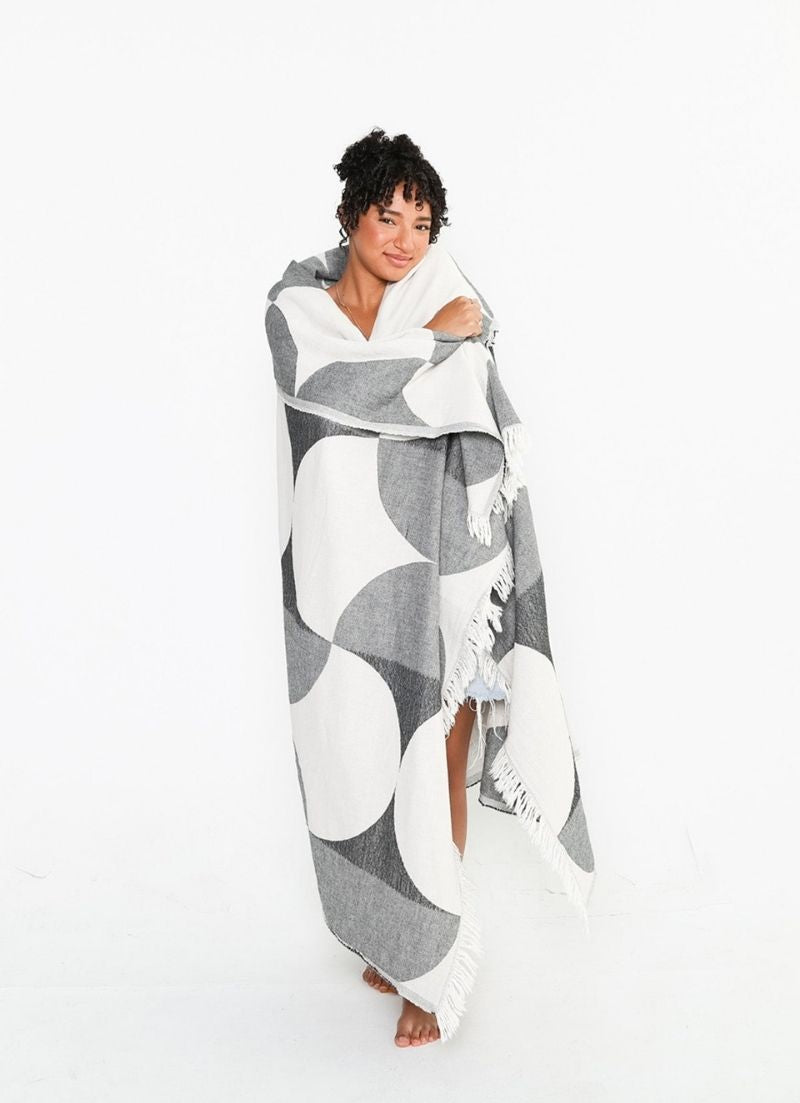 This signature throw is multi-functional; perfect for the living room, as a bed blanket, or to curl up in while enjoying your outdoor space. The neutral design and colours offer a clean and modern look for your space.