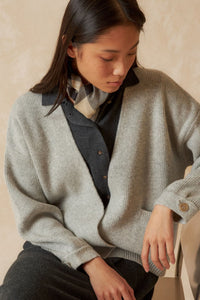 Stay stylish and sustainable with our Cross Knit Jacket. Featuring a crossover cut and double button closure, this jacket offers a unique minimalist style. The dropped shoulder and long sleeves with cuffs add to its comfort and versatility. Made from a thick-gauge sustainable knit - it's a win-win!