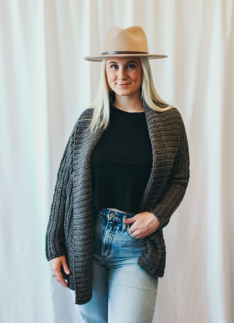 The perfect chunky knit cardigan is here. In a beautiful cool toned ashy brown, the Jaye Cardigan will be a staple in your wardrobe all year round! Open front and a longer length that falls just below the hip.