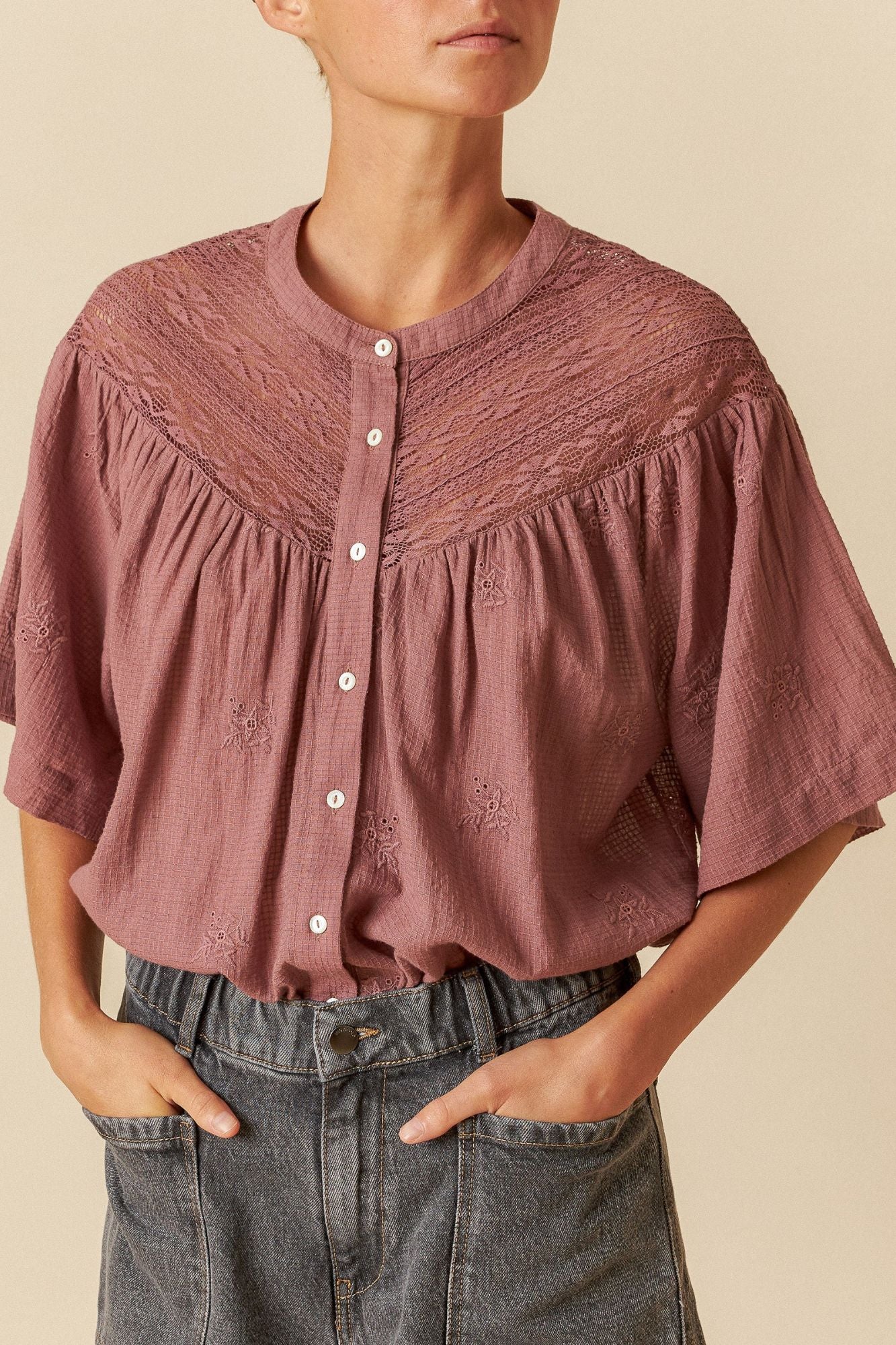 Lace Inset Yoked Blouse