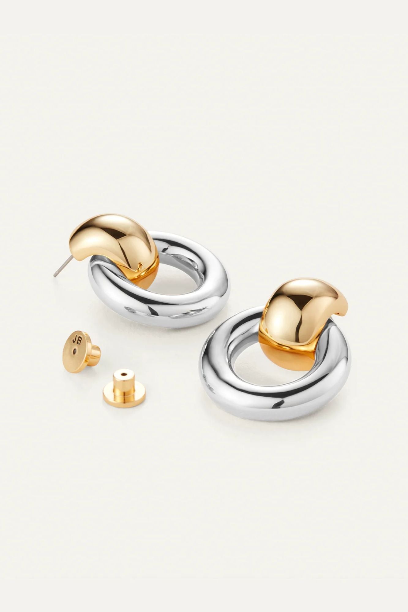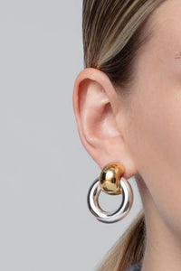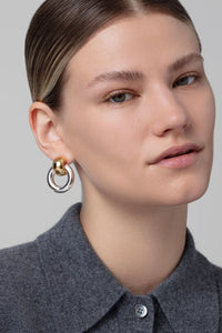Meet your new statement-making essentials: oversized hoops that dance with every move. These voluminous beauties feature a mixed metal design—gleaming silver paired with luxe 14k gold—that catches the light from every angle. The huggie base keeps them secure while the swinging hoops deliver serious presence and playful personality. High-polish finishes ensure maximum shine and sophistication. Perfect for elevating any look with bold, dynamic style.