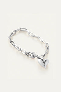 Wear your heart on your wrist with this delightfully puffy charm bracelet! A joyful inflated heart dangles from a sleek paperclip chain, catching the light with its high-polish silver finish. The adjustable length ensures a perfect fit for any wrist, making it as versatile as it is charming. A playful accessory that celebrates love and self-expression.