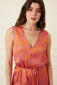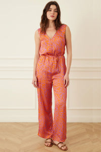 Elevate your style with the Colette Jumpsuit, crafted from luxurious 100% viscose for exceptional comfort and breathability. The flattering v-neck and tie waist create a feminine silhouette, while the straight leg design offers a modern, streamlined look. The bright, playful print ensures you'll stand out in any crowd. Perfect for day-to-night versatility.