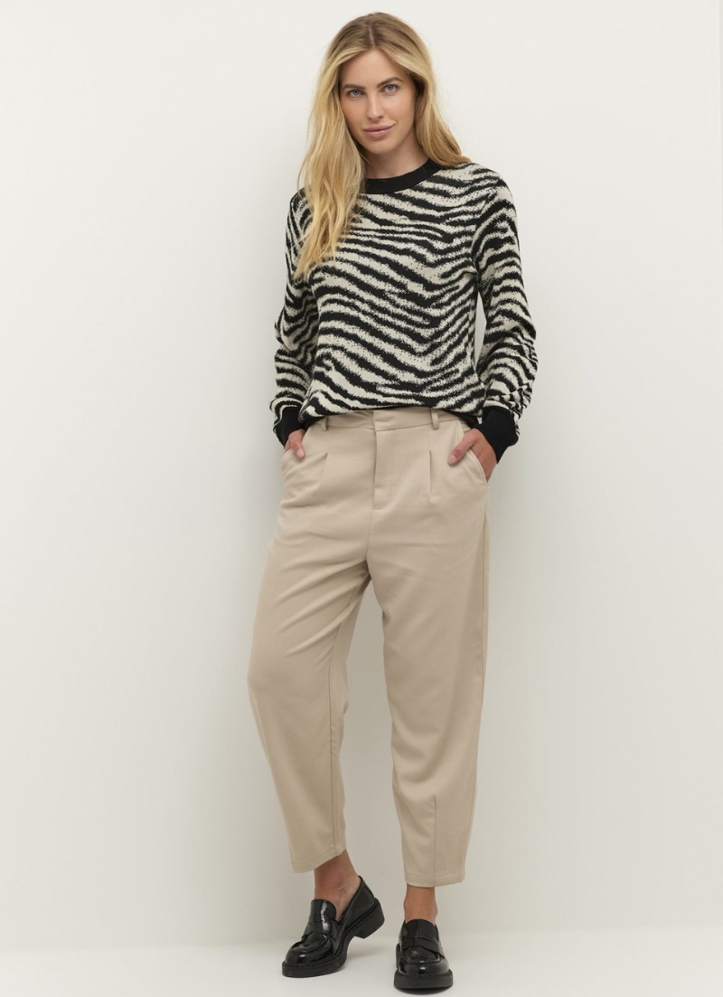 Introducing Merle 7/8 Pants by Kaffe. With a classic silhouette, these trousers offer a 7/8 length, wide leg, and stylish press pleats. Complete with pockets and a hook and zip closure, these pants are both practical and fashionable. Upgrade your wardrobe with these versatile and comfortable pants!