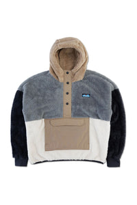 Whether you're chasing mountain peaks or ocean breezes, the Moon Ridge Sherpa Fleece delivers lasting warmth and comfort. Crafted from 100% recycled polyester butta soft Sherpa fleece, this relaxed-fit pullover features a three-panel hood and nylon crepe overlay for added protection. The half placket with logo snap closure, drop shoulder silhouette, and patch pockets combine style and utility, while ribbed cuffs and elastic hem keep the cold out. Tailored to hit at the waist, it’s the perfect layer to keep winter shivers at bay during any outdoor adventure.