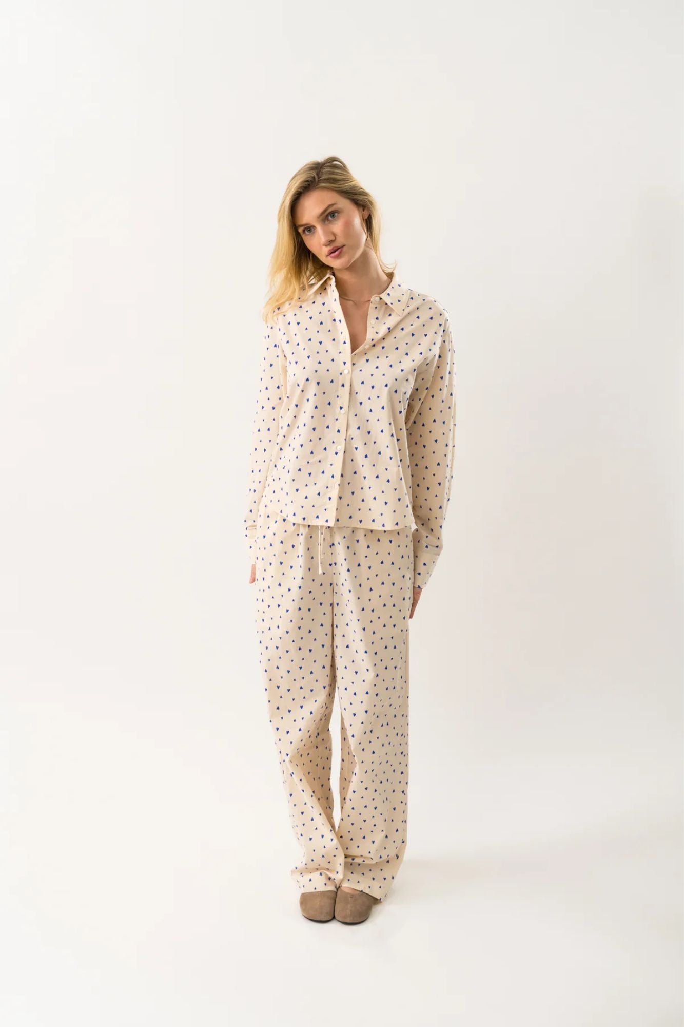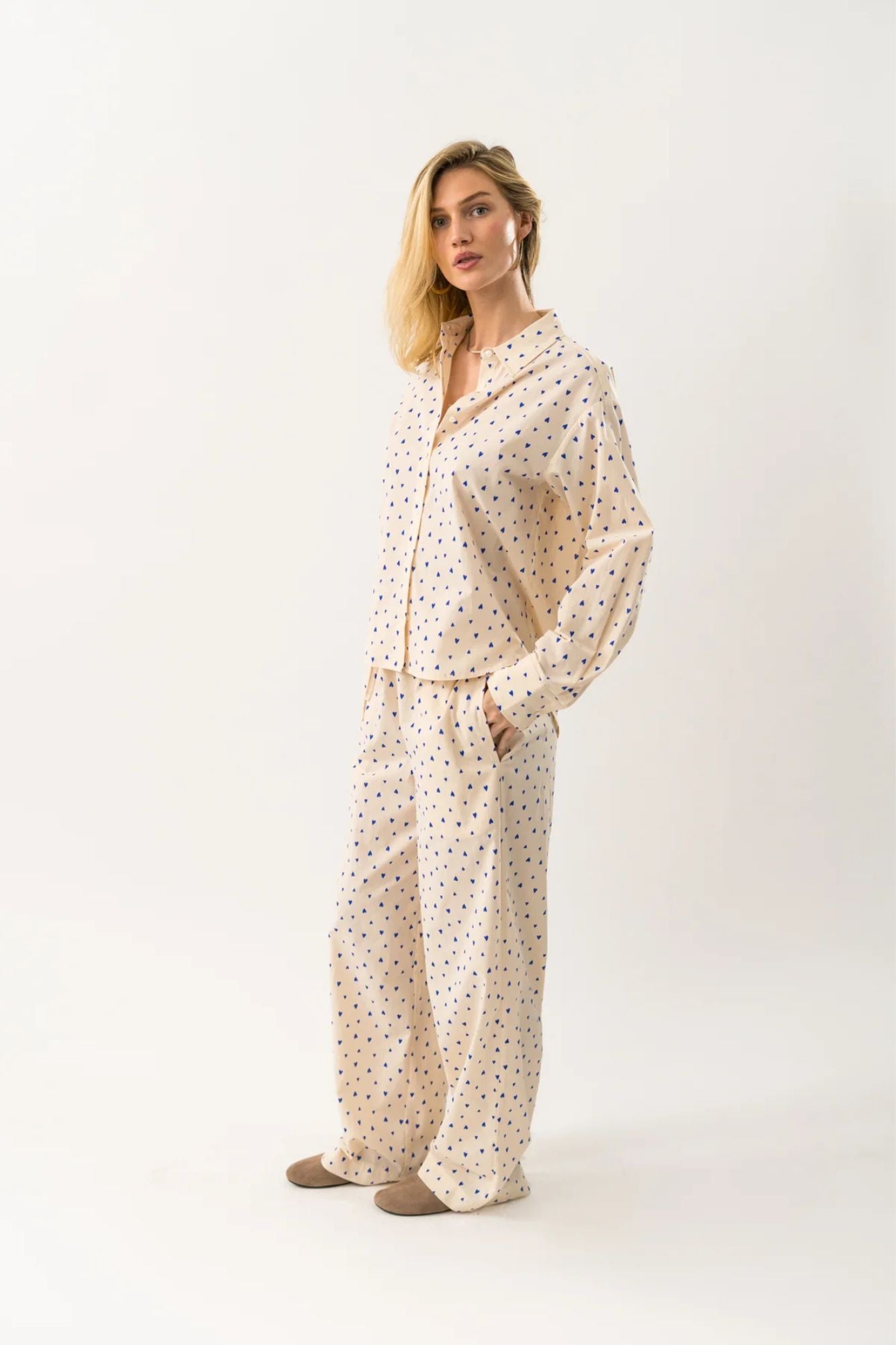 The Bleeker Shirt brings timeless style with an unexpected edge. Featuring a charming heart print that adds personality to a classic silhouette, this button-down delivers effortless sophistication. Long sleeves and a crisp collar frame the design, while the slightly oversized, boxy cut provides generous comfort for all-day wear. Perfect for those who appreciate vintage-inspired pieces with a modern twist.