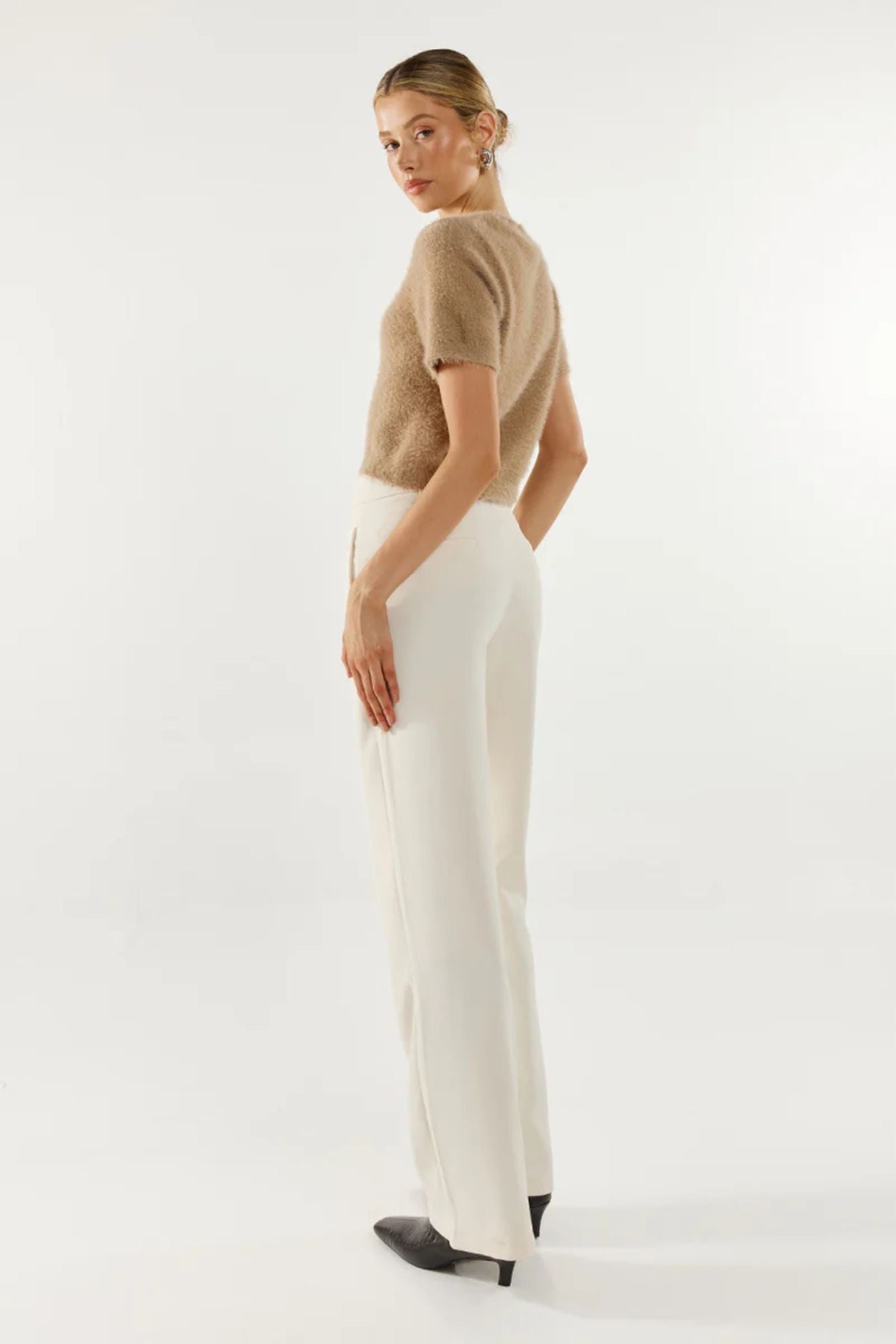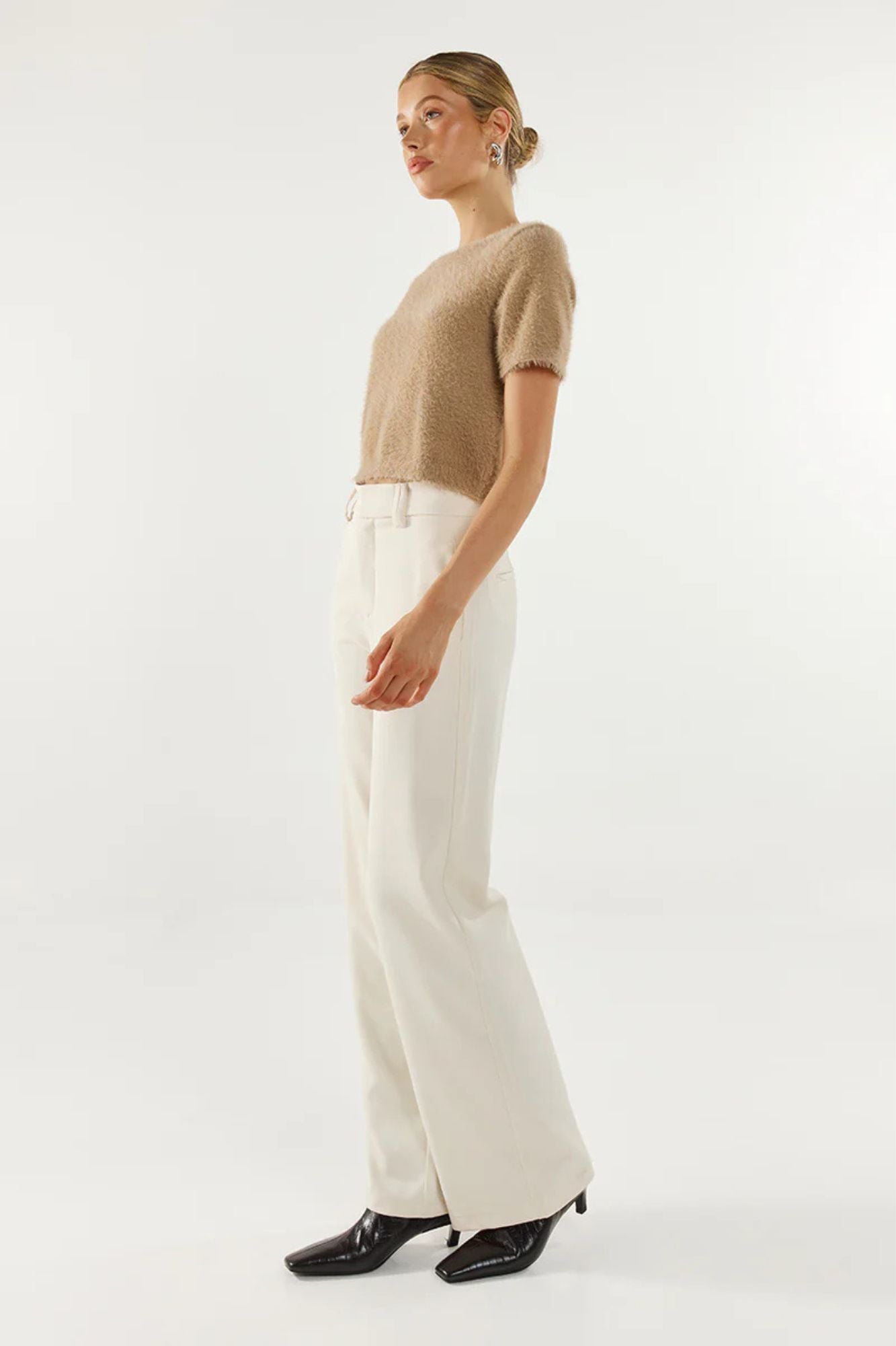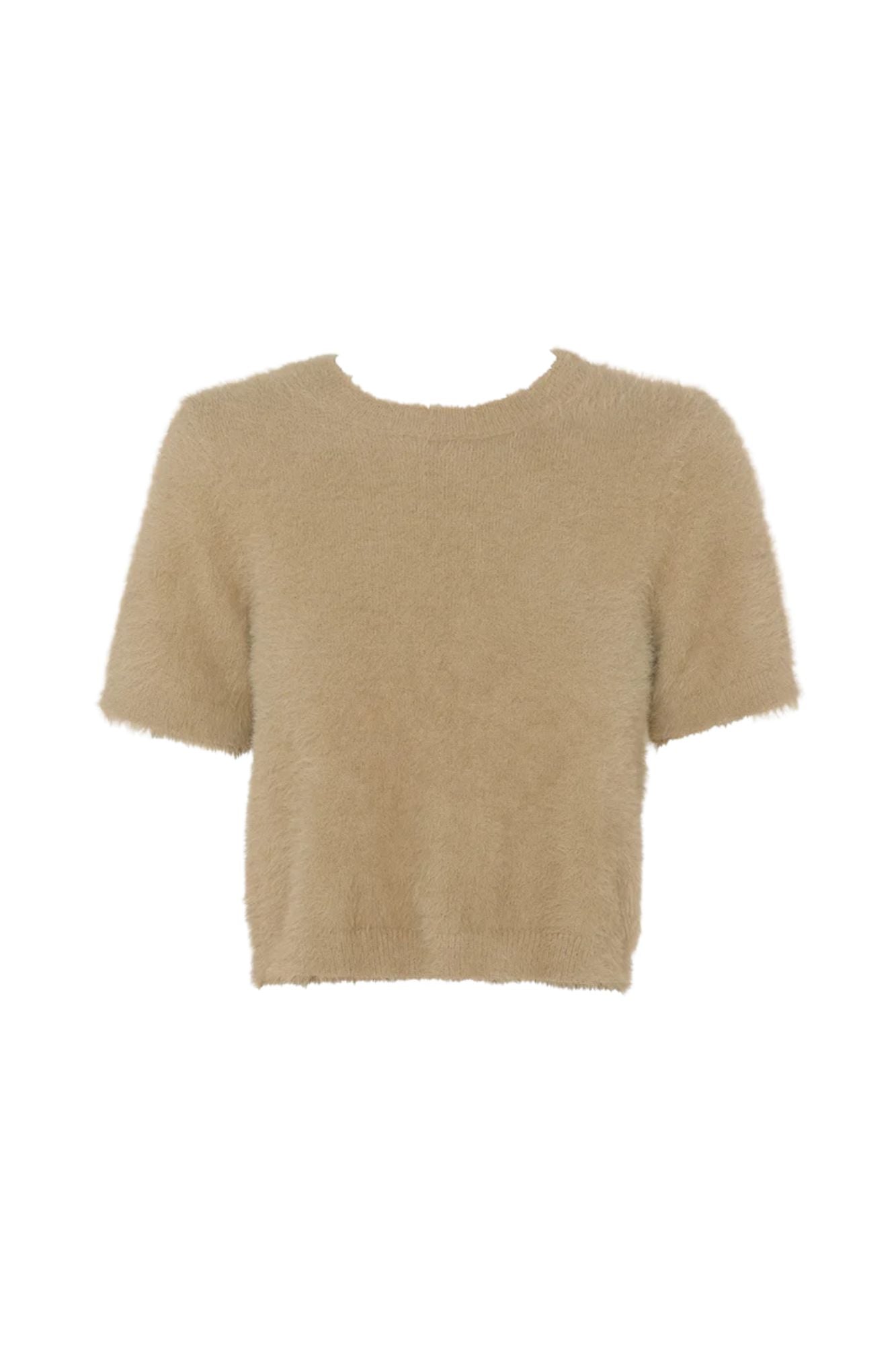 Wrap yourself in cloud-soft comfort with this beige knit tee that's as cozy as it is chic. The scooped neckline and short sleeves create an effortlessly relaxed vibe, while the fluffy knit fabric feels like a gentle hug against your skin. Perfect for layering or wearing solo, this versatile piece transitions seamlessly from casual weekends to laid-back weekday vibes. Your new go-to for that "I woke up like this" aesthetic.