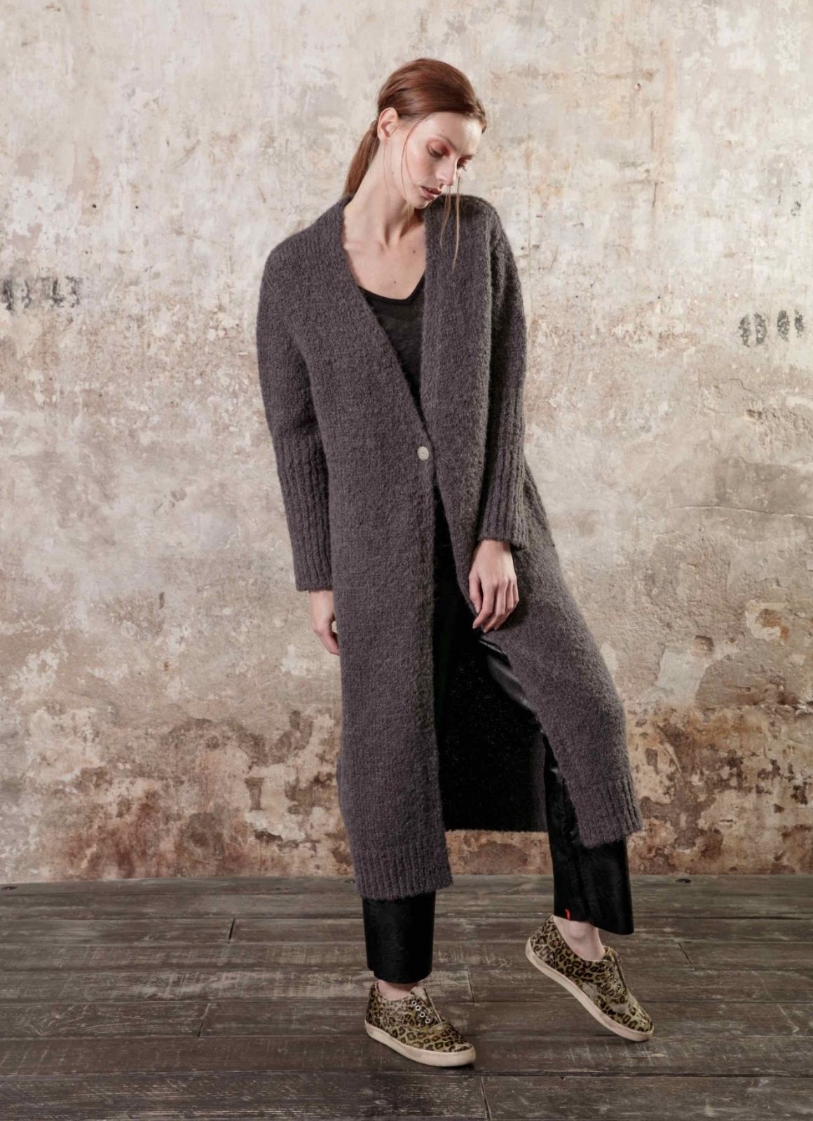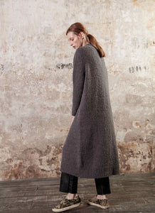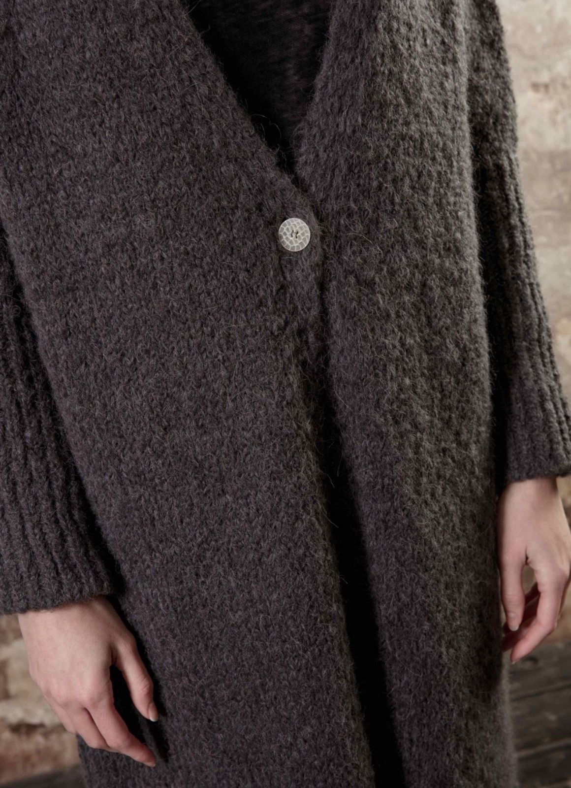 Adorned with long sleeves, a button-down closure and ribbed details, let yourself be lulled by the "ROCHE" women's long coat and its soft alpaca composition with a cozy look.