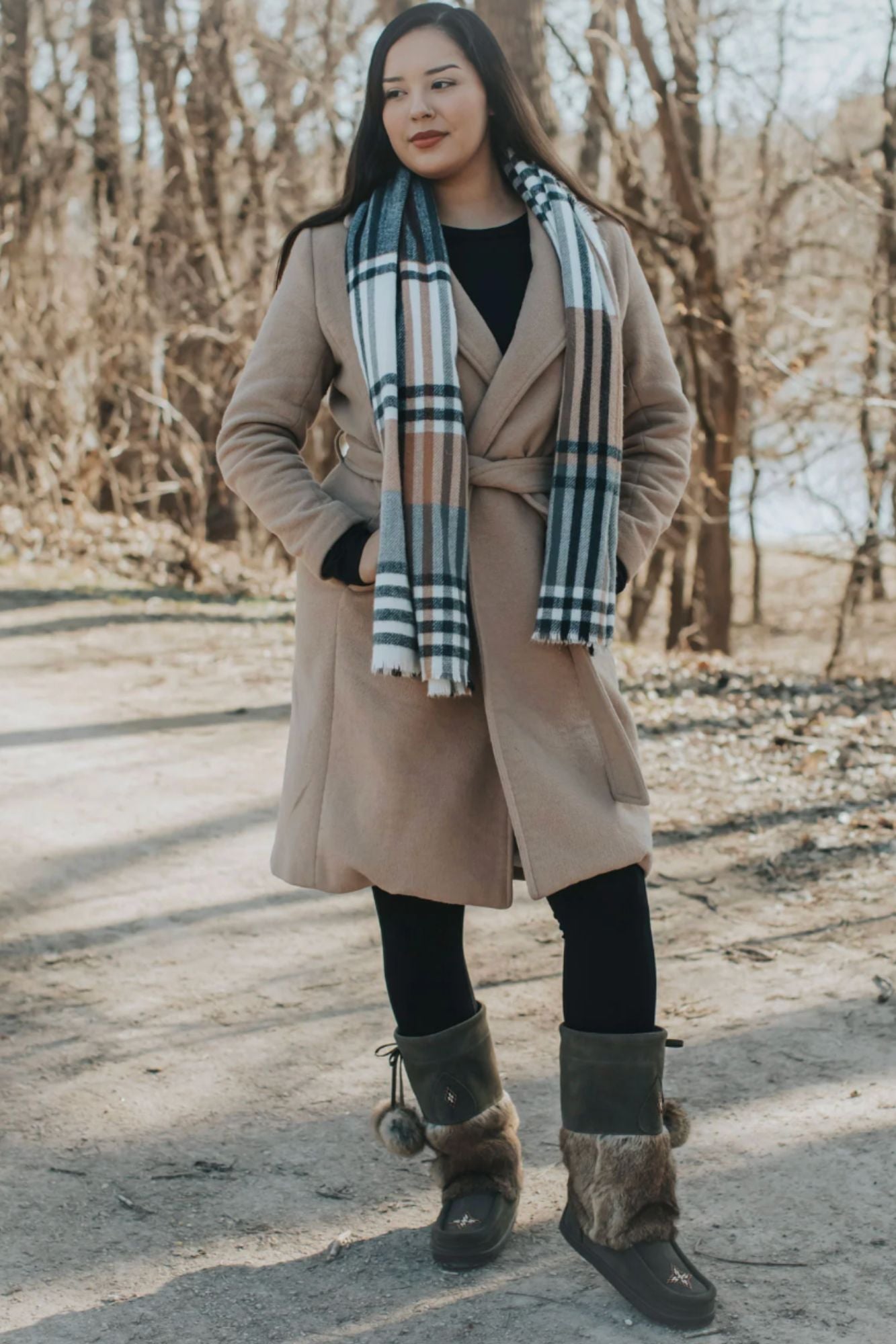 Mukluks are not built on a traditional foot last (the solid form on which most shoes are molded), so there is no "left" or "right" sole. This method has been used on Indigenous footwear for thousands of years. It's completely natural for the shoes to feel slightly "off" or awkward when new, but over time the natural materials will form to your foot and allow you to have a completely custom fit.