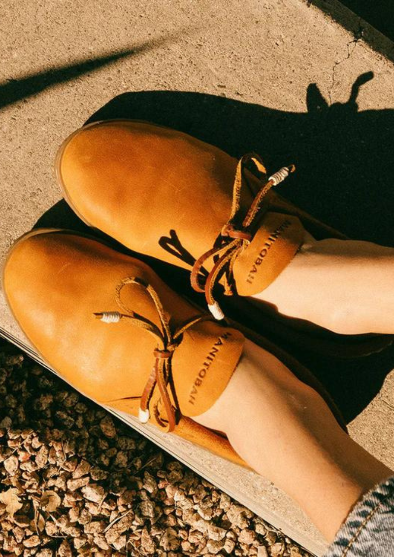 Elevate your moc game with the Modern Moccasin. This sleek design boasts a berry outsole design created by Métis artist Kaija Heitland and is crafted with top-grade leather for a luxurious, barefoot feel. The classic moccasin construction adds a touch of sophistication to any outfit.