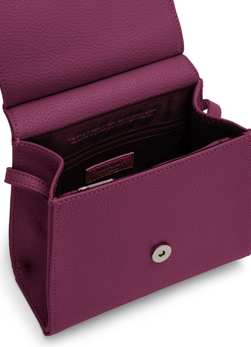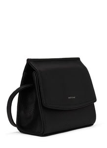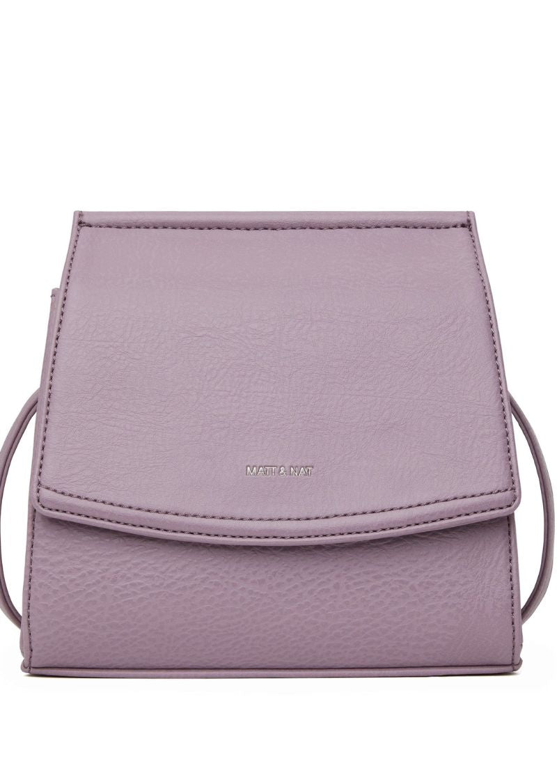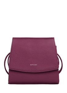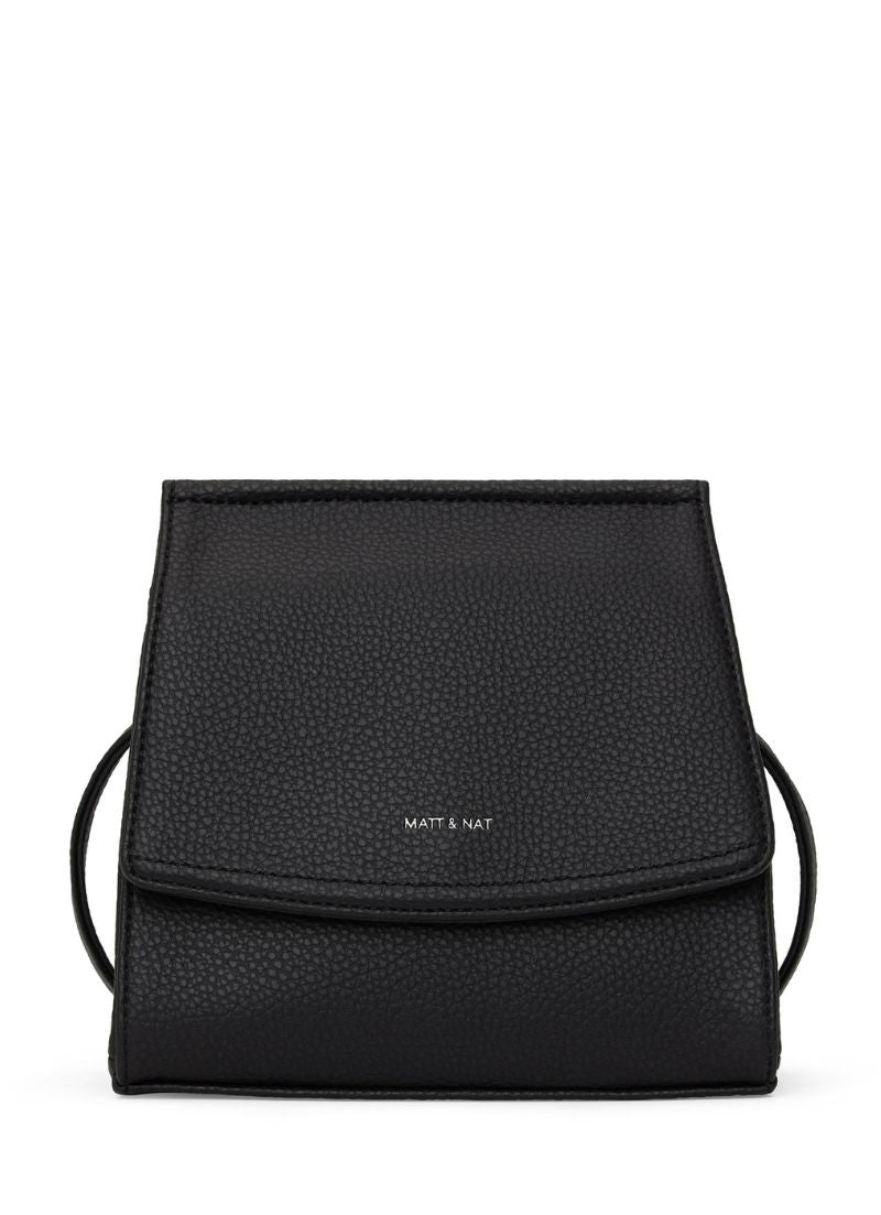 Crossbody bag with flap and hidden snap closure with an adjustable strap. Featuring a zipper compartment at interior front, zipper pocket on the back wall and logo embossed Purity patch.
