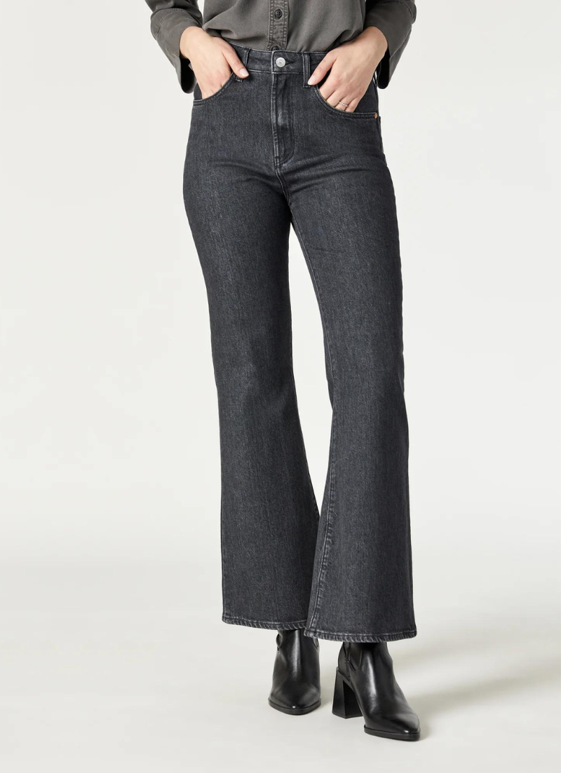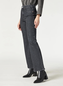 With dramatic flair, these jeans are cut from eco-friendly stretch denim made with pre- and post-consumer materials. The result is a luxurious look with the soft texture of traditional denim.