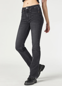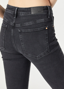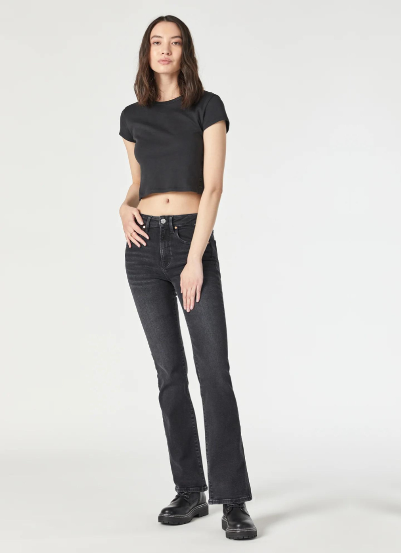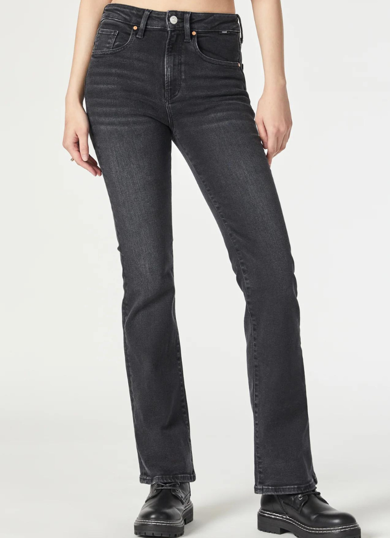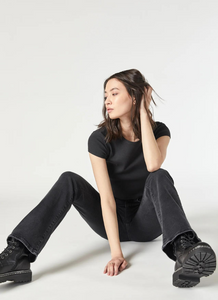 An iconic '70s flare gets a modern update. This Maria features an ultra-flattering silhouette in soft stretch denim made with organic cotton. Light distressing and a smoky vintage wash give them an extra edge.