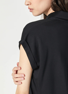 This polo neck tee gives any outfit a classic look, with cap sleeves, a neckline zip and a loose fit for style and comfort.