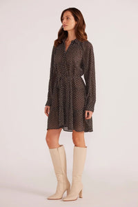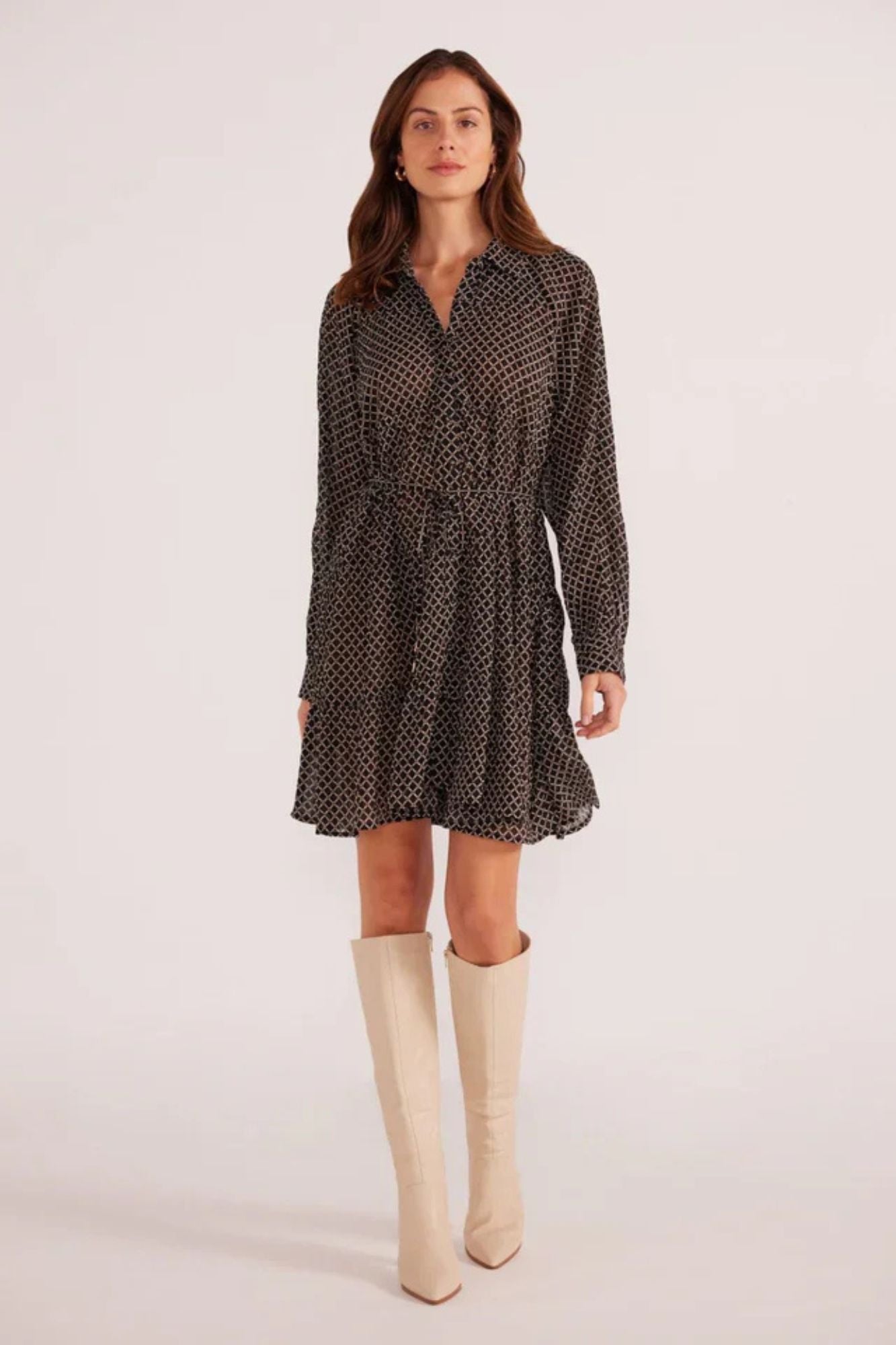 Effortlessly elevate your style with the Lydia Tiered Shirt Dress. This mini dress boasts a playful V-neck and stylish collar, while being fully lined for ultimate comfort. Perfect for any occasion, its tiered design adds a touch of sophistication to your wardrobe.
