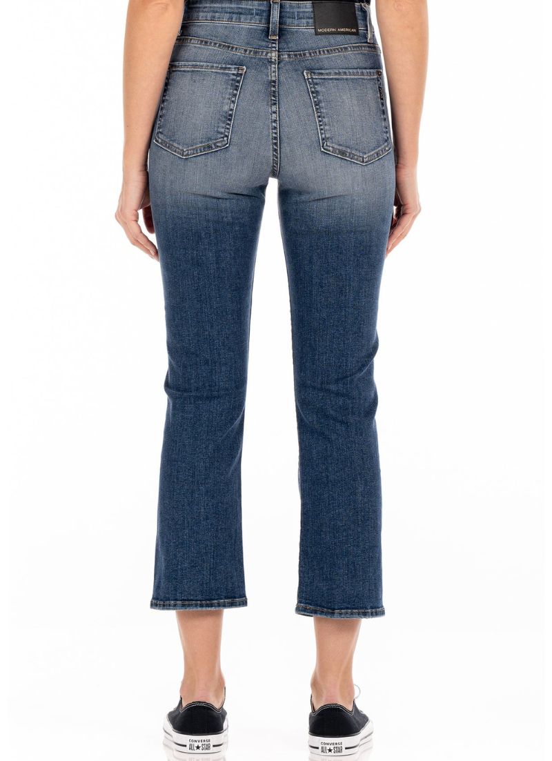 This boot crop fit is in demand! A vintage beatnik wash that has slight chews at the hip. New Haven wash is made out of our Flamingo fabric that has a slight stretch.