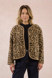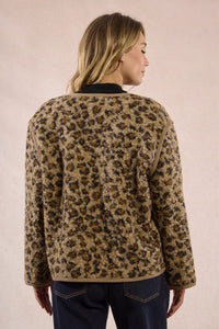 Make a statement with the Leo Jacket, your new go-to for effortless cool. This oversized beauty features a luxe fur-effect leopard pattern that turns heads wherever you roam. Slip into those roomy front pockets, button up the front, and let the straight silhouette do the talking. With long sleeves and a relaxed round neckline, it's textured perfection that works as hard as you do—whether you're running errands or ruling the room.