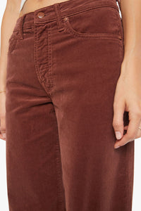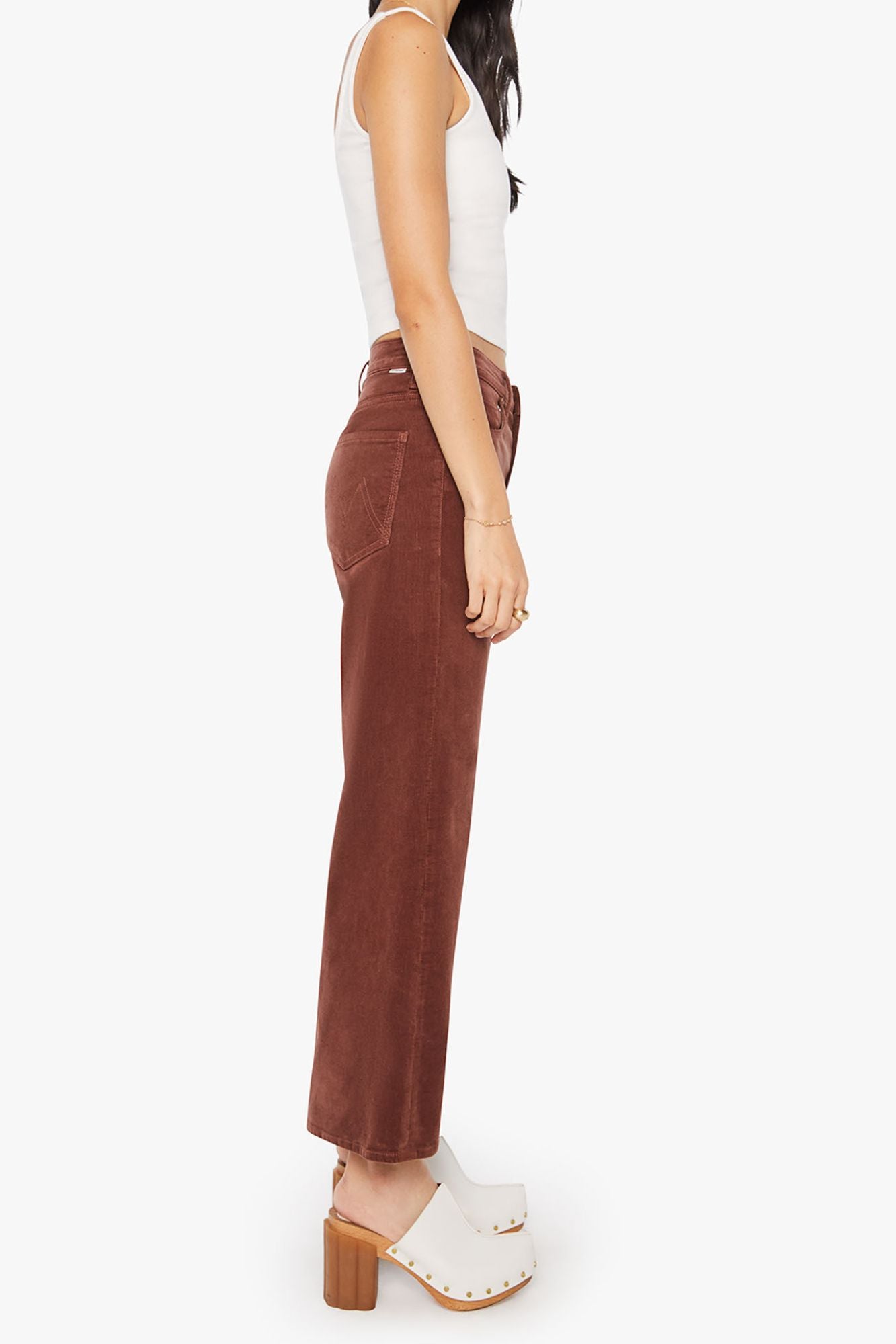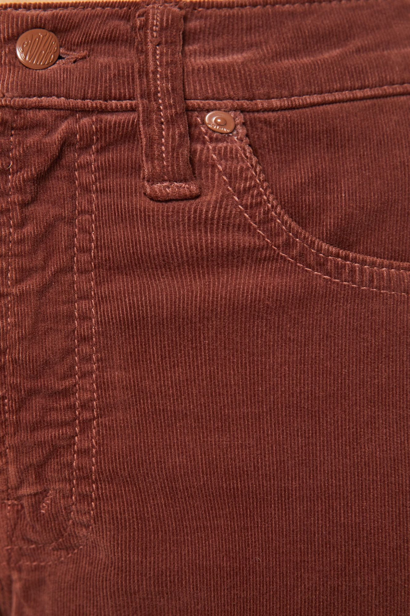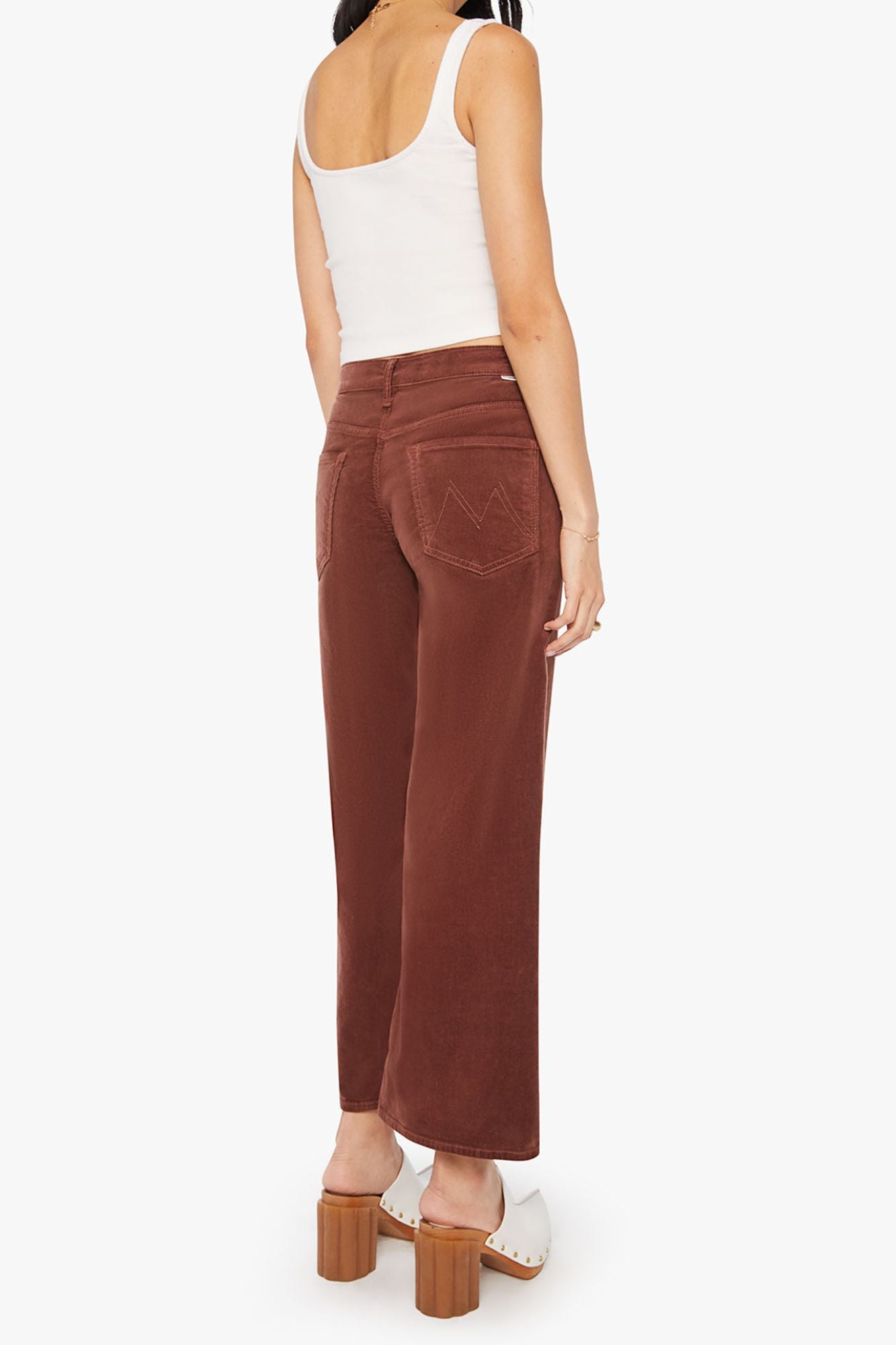 The Mid Rise Maven Ankle jeans offer a stylish blend of comfort and edge with their loose fit and wide leg silhouette. Crafted from stretch cotton micro-corduroy in a rich burnt brick red, these ankle-length jeans feature a clean hem and tonal hardware for a refined look. Perfect for adding a bold, textured touch to your wardrobe while ensuring all-day ease and movement.
