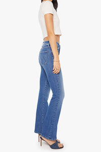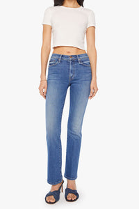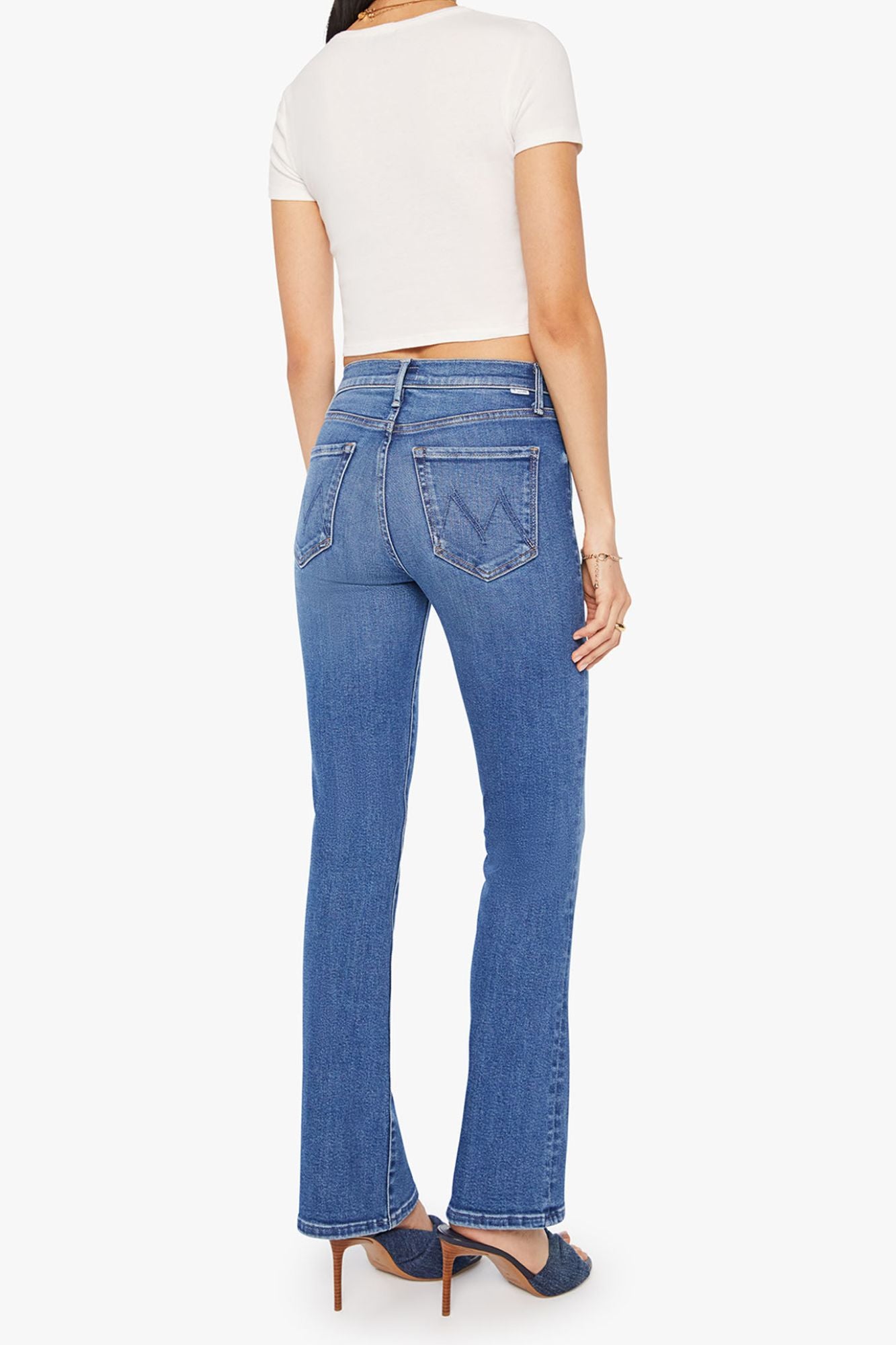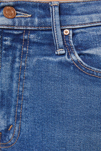 The Outsider Skimp jeans offer a sleek, narrow flare silhouette with a comfortable mid-rise fit and a long 31-inch inseam finished with a clean hem. Crafted from stretch denim in a mid-blue wash, they feature subtle whiskering and fading at the knees for a stylish, worn-in look. Perfect for those who want both comfort and a flattering shape, these jeans elevate your everyday wardrobe with effortless cool.